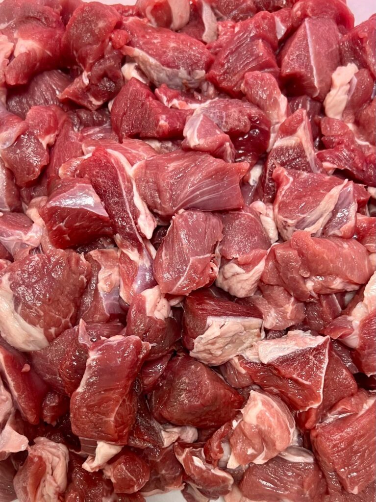 Onze lamsboutblokjes worden zorgvuldig gesneden uit de beste lamsbout: zacht, sappig en rijk van smaak. Heerlijk voor stoofgerechten, ovenschotels of om te grillen.”